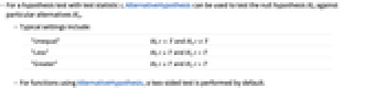 - For functions using AlternativeHypothesis, a two-sided test is performed by default.