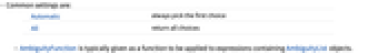 Automatic always pick the first choice All return all choices - AmbiguityFunction is typically given as a function to be applied to expressions containing AmbiguityList objects.