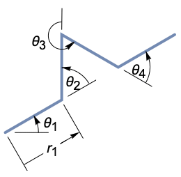 - In AnglePath[{θ1,θ2,θ3,…}], the angle θ1 is assumed to be relative to the