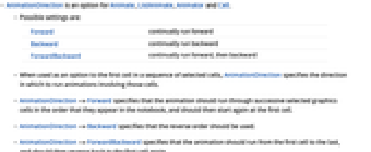 - AnimationDirection->Forward specifies that the animation should run through successive selected graphics cells in the order that they appear in the notebook, and should then start again at the first cell.