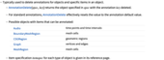 - AnnotationDelete[spec,key] returns the object specified in spec with the annotation key deleted.