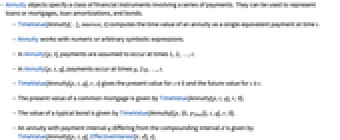 - Annuity works with numeric or arbitrary symbolic expressions.