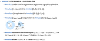 - Annulus[] is equivalent to Annulus[{0,0},{1/2,1}].