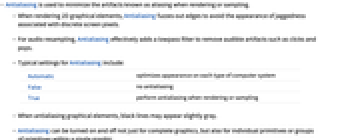 Automatic optimizes appearance on each type of computer system False no antialiasing True perform antialiasing when rendering or sampling - When antialiasing graphical elements, black lines may appear slightly gray.