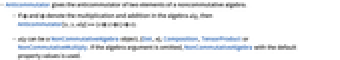 - Anticommutator gives the anticommutator of two elements of a noncommutative algebra.