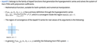 - AppellF3 belongs to the family of Appell functions that generalize the hypergeometric series and solves the system of Horn PDEs with polynomial coefficients.