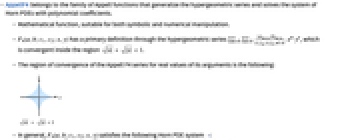 - AppellF4 belongs to the family of Appell functions that generalize the hypergeometric series and solves the system of Horn PDEs with polynomial coefficients.
