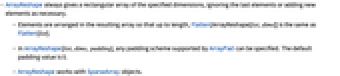 - In ArrayReshape[list,dims,padding], any padding scheme supported by ArrayPad can be specified. The default padding value is 0.