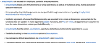 - Symbolic arguments of unspecified dimensionality are assumed to be arrays of dimensions appropriate for the functions they are used in. In multi-argument Listable functions, like Plus or Times, all arguments are assumed to have the same dimensions unless specified differently. »