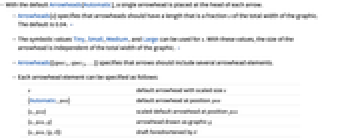 - Arrowheads[s] specifies that arrowheads should have a length that is a fraction s of the total width of the graphic. The default is 0.04. »