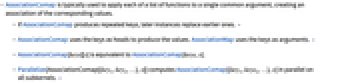 - AssociationComap is typically used to apply each of a list of functions to a single common argument, creating an association of the corresponding values.