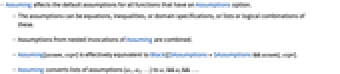 - Assuming affects the default assumptions for all functions that have an Assumptions option.