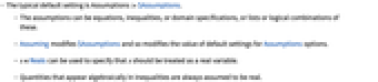- The assumptions can be equations, inequalities, or domain specifications, or lists or logical combinations of these.