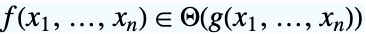 - Asymptotic equal is also expressed as f is big-theta of g, f is bounded by g, f is of order g, and f grows as g. The point x* is often assumed from context.