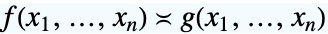 implies ![c_1 TemplateBox[{{g, (, {{x, _, 1}, ,, ..., ,, {x, _, n}}, )}}, Abs]<=TemplateBox[{{f, (, {{x, _, 1}, ,, ..., ,, {x, _, n}}, )}}, Abs]<=c_2 TemplateBox[{{g, (, {{x, _, 1}, ,, ..., ,, {x, _, n}}, )}}, Abs] c_1 TemplateBox[{{g, (, {{x, _, 1}, ,, ..., ,, {x, _, n}}, )}}, Abs]<=TemplateBox[{{f, (, {{x, _, 1}, ,, ..., ,, {x, _, n}}, )}}, Abs]<=c_2 TemplateBox[{{g, (, {{x, _, 1}, ,, ..., ,, {x, _, n}}, )}}, Abs]](Files/AsymptoticEqual.en/36.png)