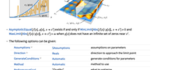 Assumptions $Assumptions assumptions on parameters Direction Reals direction to approach the limit point GenerateConditions Automatic generate conditions for parameters Method Automatic method to use PerformanceGoal "Quality" what to optimize - Possible settings for Direction include:
