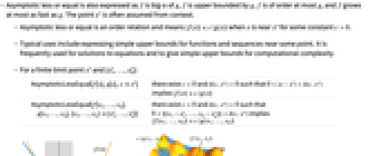- Asymptotic less or equal is also expressed as f is big-o of g, f is upper bounded by g, f is of order at most g, and f grows at most as fast as g. The point x* is often assumed from context.