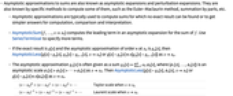 - Asymptotic approximations to sums are also known as asymptotic expansions and perturbation expansions. They are also known by specific methods to compute some of them, such as the Euler–Maclaurin method, summation by parts, etc.