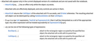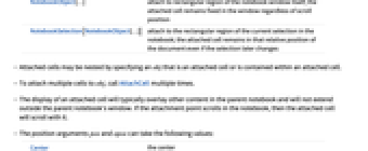 - The display of an attached cell will typically overlay other content in the parent notebook and will not extend outside the parent notebook's window. If the attachment point scrolls in the notebook, then the attached cell will scroll with it.