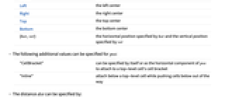 Center the center Left the left center Right the right center Top the top center Bottom the bottom center {hor,ver} the horizontal position specified by hor and the vertical position specified by ver - The following additional values can be specified for pos: