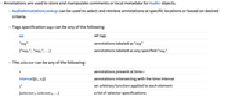 - AudioAnnotationLookup can be used to select and retrieve annotations at specific locations or based on desired criteria.