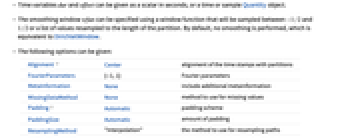 or a list of values resampled to the length of the partition. By default, no smoothing is performed, which is equivalent to DirichletWindow. - The following options can be given: