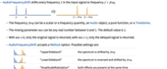 - AudioFrequencyShift shifts every frequency f in the input signal to frequency