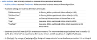 - AudioLoudness returns a TimeSeries of the computed loudness measure for each partition.