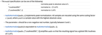 - AudioNormalize[audio] is equivalent to AudioNormalize[audio,1].