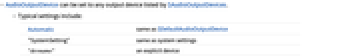 Automatic same as $DefaultAudioOutputDevice "SystemSetting" same as system settings "devname" an explicit device