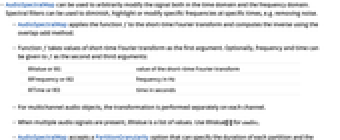 - AudioSpectralMap applies the function f to the short-time Fourier transform and computes the inverse using the overlap-add method.