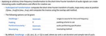 - AudioSpectralTransformation computes the short-time Fourier transform of audio, maps every value at position f[{time,freq}] to {time,freq}, and computes the inverse using the overlap-add method.