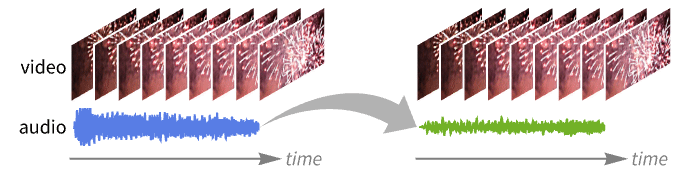AudioTrackApply applies a function to the audio track of a video file and returns the video with processed audio track: