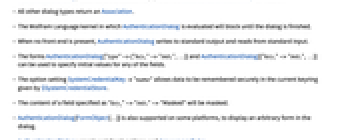 - AuthenticationDialog[arg] is equivalent to AuthenticationDialog[arg,Identity].