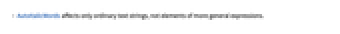 - AutoItalicWords affects only ordinary text strings, not elements of more general expressions.