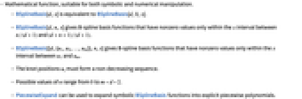 - BSplineBasis[d,n,x] gives B-spline basis functions that have nonzero values only within the x interval between