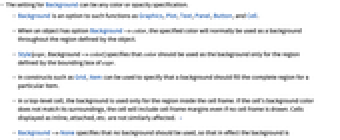 - Background is an option to such functions as Graphics, Plot, Text, Panel, Button, and Cell.