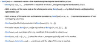 - With arrays an of the same rank as the whole sparse array, Band[pos]->{a1,a2,…} represents a sequence of non-overlapping subarrays.