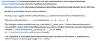 tests whether data follows a MultinormalDistribution using the Baringhaus–Henze test.