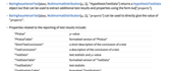 -value"TestDataTable" formatted version of "TestData" "TestStatistic" test statistic "TestStatisticTable" formatted "TestStatistic" - The following properties are independent of which test is being performed.