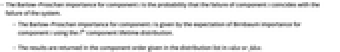 coincides with the failure of the system. - The Barlow–Proschan importance for component