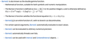 - For certain special arguments, BarnesG automatically evaluates to exact values.
