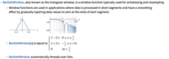- BartlettWindow, also known as the triangular window, is a window function typically used for antialiasing and resampling.