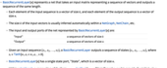 - Information[BasicRecurrentLayer[…]] gives a report about the layer.