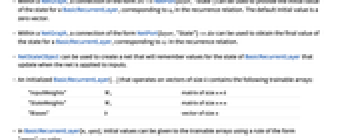 - Information[BasicRecurrentLayer[…],prop] gives the value of the property prop of BasicRecurrentLayer[…]. Possible properties are the same as for NetGraph.