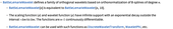 - BattleLemarieWavelet defines a family of orthogonal wavelets based on orthonormalization of B-splines of degree n.