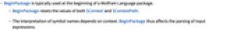- The interpretation of symbol names depends on context. BeginPackage thus affects the parsing of input expressions.
