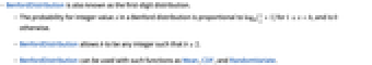 - BenfordDistribution[b] represents a discrete statistical distribution defined at integer values