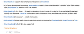 - BinaryReadList supports the same types and options as BinaryRead.