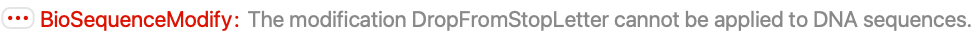 "DropIncompleteCodons" drop incomplete codons from the end of DNA or RNA "DropToStartCodon" drop letters from DNA or RNA until a start codon is found "DropFromStopLetter" drop the letters from a peptide after a stop letter is found